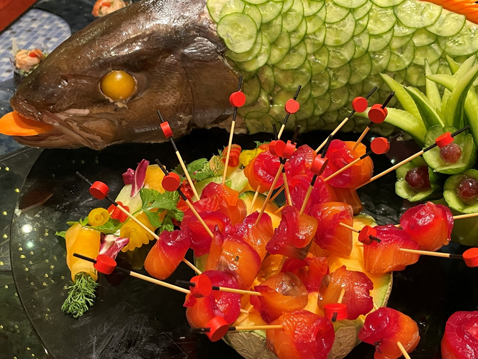 Der Buffet war richtig spektakulär. Es gab alles in Hülle und Fülle und die Dekoration war meisterhaft. Und die Sachen sahen nicht nur gut aus, sie schmeckten auch super lecker.