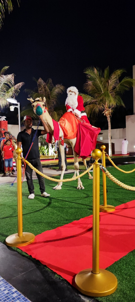 Später kam der Weihnachtsmann auf einem Kamel und hat an die kleinen Kinder Geschenke verteilt. Unsere zwei Teenager waren natürlich schon zu groß dafür.