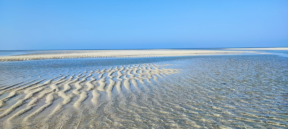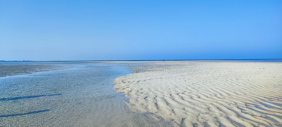Ursprünglich wollten wir heute weiterfahren, weil gestern Abend und Nacht uns der Platz nicht wirklich zugesagt hat. Es gab relativ viel Müll und die Nacht war nicht wirklich ruhig. Aber wir hatten noch unsere Wäsche in der „Waschmaschine“. Die musste ich aufhängen. Wir wollten warten bis sie trocknet und danach losfahren. Aber dann tagsüber war der Ort ganz anders als nachts. Es war wirklich ruhig und das Wasser wunderbar sauber und türkisblau. Danach kam Ebbe und das Wasser war einfach komplett weg. Man konnte richtig weit mit trockenen Füßen ins Meer reinlaufen. Wir fanden es hier dann doch einen guten Ort, um uns ein bisschen Pause zu gönnen, alles zu erledigen und einfach nochmal einen Strand zu genießen. Marc hat meine Tür auseinandergenommen und mein Fensterheber repariert. Da es hier niemand war, konnte man hier auch in Bikini und Badehose ins Wasser und es war einfach schön, nicht weiterfahren zu müssen. Ab und zu kamen Locals, die sich mit uns kurz unterhielten und/oder einen Bild vom Fritzchen wollten. Es war einfach ein entspannter Tag.