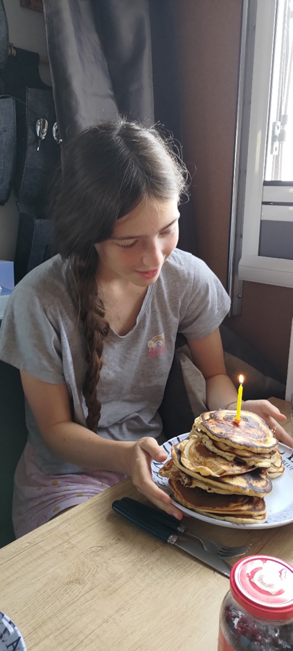 Also wurde Kuchen backen und Feiern wurde vertagt. Ich habe ein paar Amerikanische Pancakes gemacht und Mira durfte die Kerze auf dem Pancake-Berg auspusten. Draußen war wunderbares Herbstwetter, aber wir haben alle den ganzen Tag im Pyjama in Fritzchen verbracht.