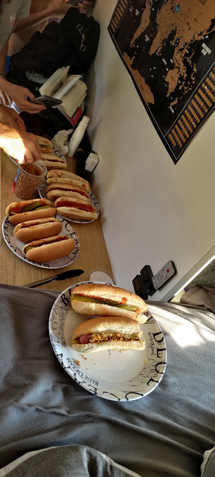 Abends haben wir Hotdogs gegessen. Als einziges Highlight haben wir einen Kinoabend gemacht. Wir haben uns alle sehr kuschelig in unser Bett und haben auf dem Beamer Sherlock Holmes geschaut. Nur Popcorn fehlte. 😊