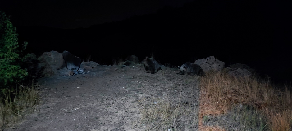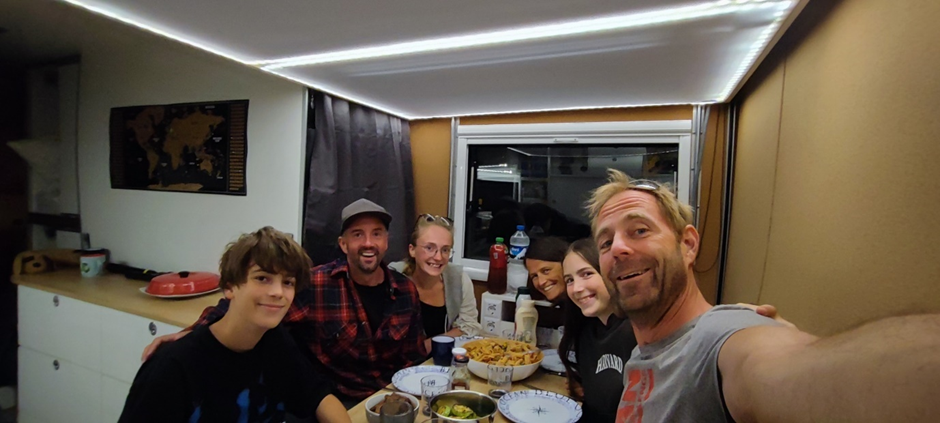 Als das Essen fertig war, sind wir reingegangen und haben das köstliche Abendessen gemeinsam genossen. Der Abend war wieder wunderbar. Später sind Manuel und Ilona unversehrt zu ihrem Van zurückgelaufen und wir alle haben eine ruhige Nacht im Krater verbracht.
