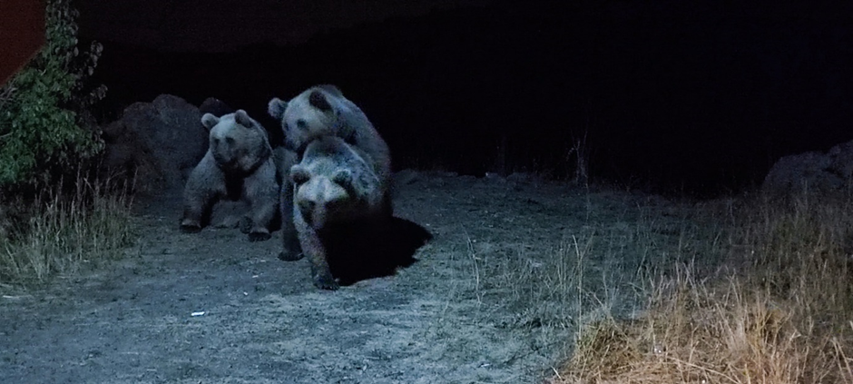 Als wir die wunderbaren Landschaft bei Sonnenuntergang beobachtet haben, entdeckte ich unten am kleinen See 3 Braunbären: eine Mama mit 2 Bärenjungen. Wir haben schon gehört, dass hier Bären leben und wir haben uns gefreut, sie entdeckt zu haben.