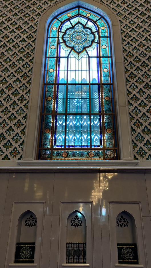 Die Moschee ist ein schönes Beispiel von zeitgemäßer islamischer Architektur. Sie kann 20.000 Gläubige aufnehmen. Die große Gebetshalle ist sehr schön, der Perserteppich von der Größe von 70*60 m ist der zweitgrößte der Welt.