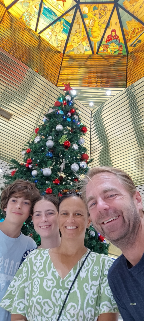 Aber wir haben nicht dieses Buch gesucht (dieses haben wir direkt von Finn bekommen), sondern das Buch „Oman Offroad“. Wir waren in drei verschiedenen Läden, die Finn empfohlen hat, aber das Buch war leider überall ausverkauft. Finn hat auch noch bei ein paar Buchläden angerufen, aber er hatte auch keinen Erfolg. Na ja, man kann nicht alles haben. Aber wir haben einen Weihnachtsbaum gesehen: