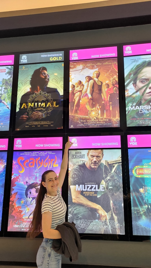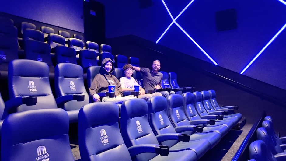 Wir sind dann direkt zum VOX Kino gelaufen. Bei den Automaten konnten wir aber keine Karten für den Film kaufen, da er nicht auswählbar war. Wir sind dann zu den Kassen, wo allerdings eine Schlange war. Über den Kassen waren Bildschirme, die die Vorstellungen anzeigten. Hier haben wir aber unsere Vorstellung auch nicht gesehen. Ich habe eine Dame hinter der Kasse für Online-Bestellungen gefragt, warum unsere Vorstellung nicht auf der Liste ist. Sie hat mir erklärt, dass sie wegen technischer Probleme die Vorstellung absagen mussten. Sie hat nachgeschaut, dass die nächste Vorstellung erst um 10:30 Uhr wäre. Das wäre für uns zu spät. Als ich es ihr gesagt habe und mich bedankt habe, hat sie gesagt, wir sollten warten. Sie hat geklärt, ob der Film abspielbar ist und nachgeschaut, ob eine andere Leinwand in einem anderen Kinosaal frei wäre. Es gab keine freie, aber sie hat kurzerhand „Schlümpfe“ mit unserem Film ausgetauscht und uns gefragt, ob 8:55 Uhr für uns okay wäre. Wahnsinn! Sie hat nur für uns eine neue Vorstellung gemacht! Stellt es euch mal in Deutschland vor! Also wir konnten die Karten kaufen. Wir hatten einen bisschen Zeit, die wir in der Mall natürlich schnell verbracht haben. Als wir dann zu unserer Vorstellung kamen, war der Raum leer. Es war eine private Vorstellung nur für uns. 😊
