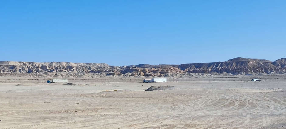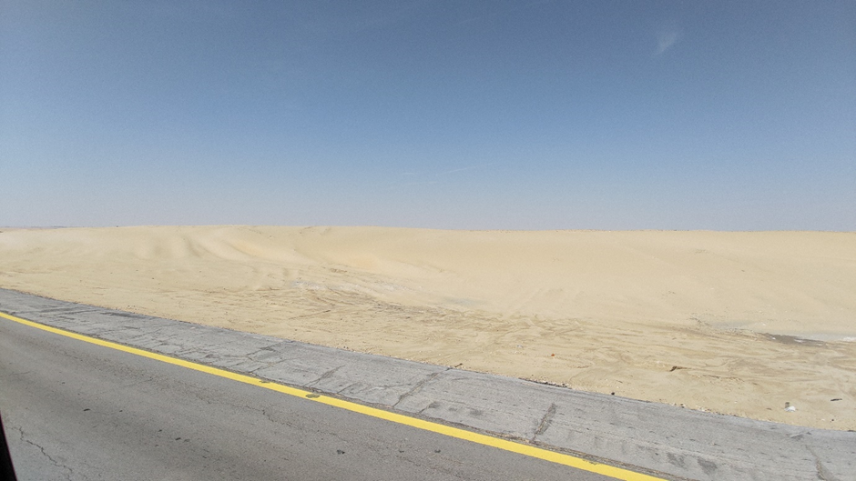 Wir sind erstmal wieder zu der Pumpstation gefahren, wo wir schon einmal waren. Diesmal sind wir routiniert durch die Tankstelle und entgegen der Fahrtrichtung neben der Schnellstraße reingefahren. Wieder durften wir ohne Probleme und umsonst unsere Wassertanks befüllen. Danach haben wir Dammam und Al Khobar Richtung Riyadh verlassen. Wir sind durch wüstenartige Landschaft und ab und zu neben Sanddünen gefahren. Die Dromedare waren natürlich auch wieder da.