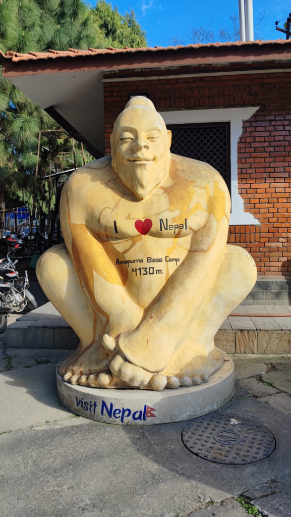 Als wir fertig waren, hatten wir eine Packliste und eine Liste mit den Dinge, die wir heute in Thamel (der Touristenbezirk von Kathmandu) besorgen wollten. Danach haben wir ein Taxi gerufen und sind zuerst zum Tourismusbüro gefahren, um dort unser ACAP Permit (Annapurna Conservation Area Project) zu besorgen. Diese Genehmigung ist notwendig, wenn man im Annapurna Gebirge wandern möchte. Wir kamen beim Büro kurz vor 16:00 Uhr an, da wir die Information hatten, dass es (und auch das Visabüro) bis 17:00 Uhr offen ist. Leider war die Info falsch, und beide Büros machen um 16:00 Uhr zu. Wir hatten Glück, der nette Mann hinter den Tresen hat unser Permit noch fertiggestellt, auch wenn seine Arbeitszeit eigentlich schon abgelaufen war.