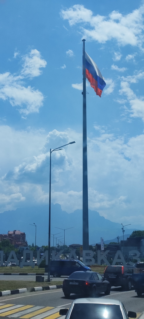 Heute war unser letzter Tag in der russischen Föderation. Wir fuhren aus Grozny nach Vladikavkaz. Auf dem Weg war es sehr interessant zu sehen, dass bei jeder Kreuzung (aber tatsächlich bei JEDER) Polizeiautos und Polizisten stehen. Wir wussten nicht, dass sie heute jemanden Besonderen erwarten, oder ob es immer so ist, aber es war echt komisch.