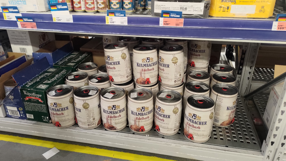 Hier gaben wir unsere letzten Rubel in einem „Metro“ aus. (So machen wir es normalerweise, wir behalten nichts vom Geld der einzelnen Länder, sondern kaufen dann kurz vor der Grenze noch Getränke oder Diesel damit.) Wie gesagt, die Wirkung der Sanktionen kann man nicht wirklich sehen, es scheint hier nichts zu fehlen. Hier im Metro war es nicht anders, es gab auch deutsches und tschechisches Bier zum Beispiel.