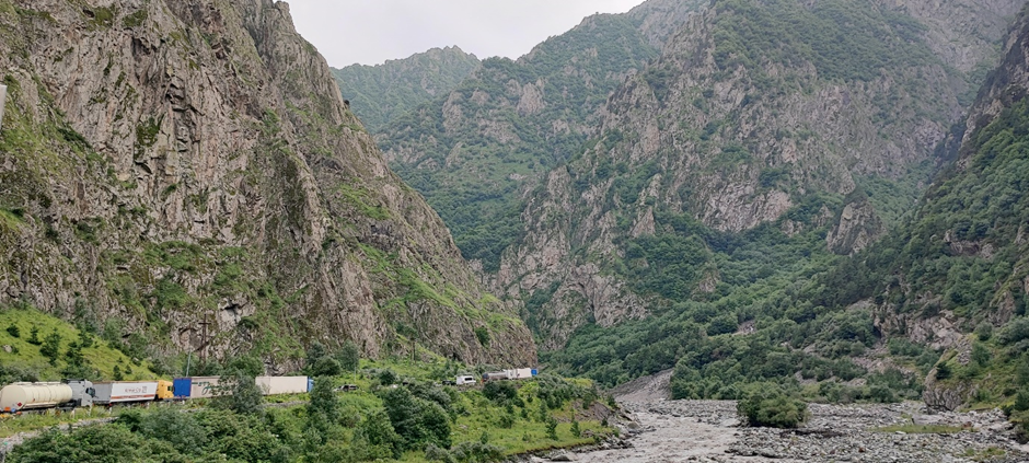 Nach Vladikavkaz kamen wieder Berge in Sicht. Die Grenze zwischen Russland und Georgien liegt im Großen Kaukasusgebirge.