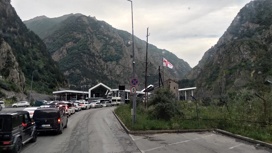 Es dauerte ewig, bis wir bei der georgischen Seite ankamen. Hier mussten wir als Passagiere aussteigen und nur Marc durfte im Auto bleiben. Vor dem Gebäude, wo die Pässe der Passagiere kontrolliert wurden, bildete sich eine große Menschentraube. Leider hatten wir das Pech, dass mit uns gleichzeitig mehrere Busse an der Grenze ankamen, die voll mit Menschen waren. Es dauerte Stunden, bis wir bei der tatsächlichen Passkontrolle ankamen. Marc wartete schon auf uns auf der anderen Seite. Wir haben dann im Gebäude noch Geld gewechselt und SIM-Karten gekauft. Es war schon dunkel und wir wollten nicht mehr weit fahren. Wir fuhren zu einem Parkplatz bei den Gveleti Wasserfällen, wo wir die Nacht verbracht haben. Dort haben wir dann unser 24. Land: Georgien wird von der Karte abgekratzt.