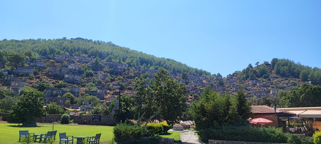 Als Nächstes sind wir zu einem anderen besonderen Ort gefahren: nach Kayaköy, einer verlassenen Stadt. Einst war das türkische Kayaköy ein lebendiger Ort, heute pfeift in einem Großteil des Dorfes dort der Wind durch die leeren Gassen einer Geisterstadt. Schuld ist ein Abkommen zwischen Athen und Ankara, das Tausenden ihre Heimat nahm. 1923, nach dem Unabhängigkeitskrieg der Türkei wurde das Abkommen unterschrieben, worauf basierend ein Völkeraustausch stattfand: griechische Muslime kamen in die Türkei und ottomanische Christen siedelten nach Griechenland um. Es gab aber viel mehr türkische Christen als griechische Muslime, also blieben viele türkische Städte verlassen. So passierte es auch in Kayaköy. Die Neueinsiedler haben sich im Tal niedergelassen, und die Häuser am Berghang blieben leer. Später wurden sie noch von einem Erdbeben zerstört.