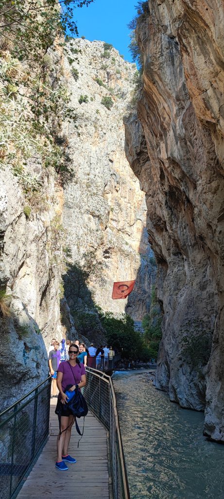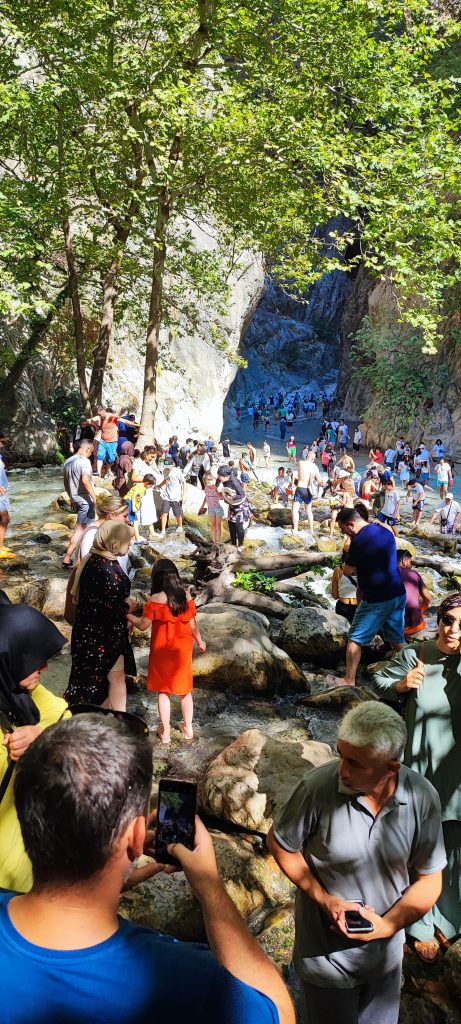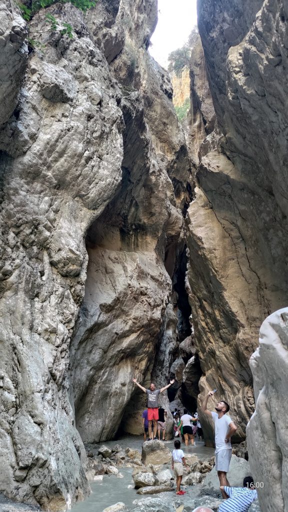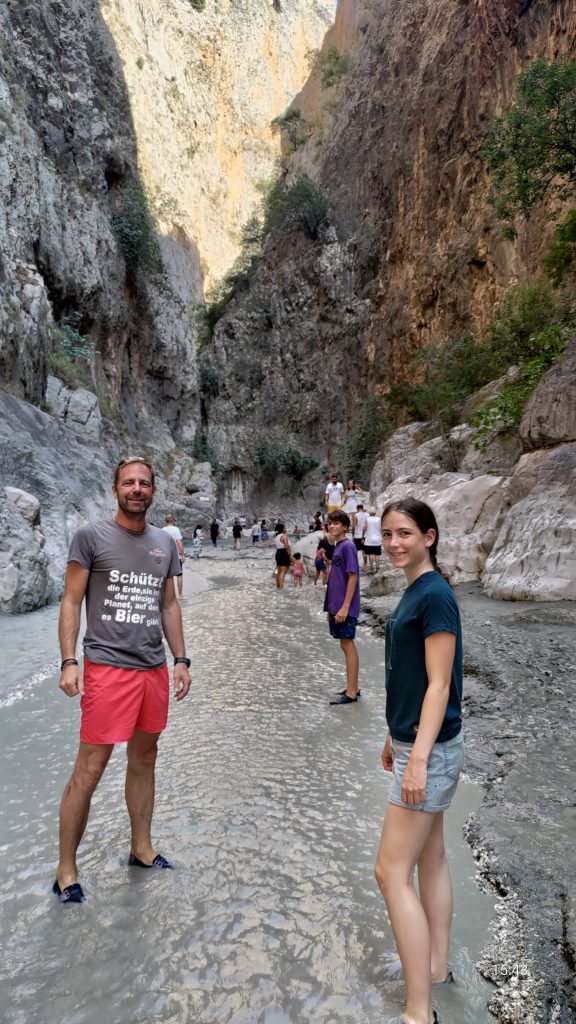 Nach unserem Besuch war es auch schon früh nachmittags und sehr heiß. Wir brauchten eine Abkühlung. Dafür war unser nächstes Ziel bestens geeignet. Wir sind hoch in die Berge gefahren. In einer Stunde sind wir bei der Saklikent Schlucht angekommen. Wir wollten in die Schlucht hochlaufen und danach noch mit Gummireifen Rafting machen. Danach kam alles anders, so wie es beim Reisen halt öfter ist. 😊