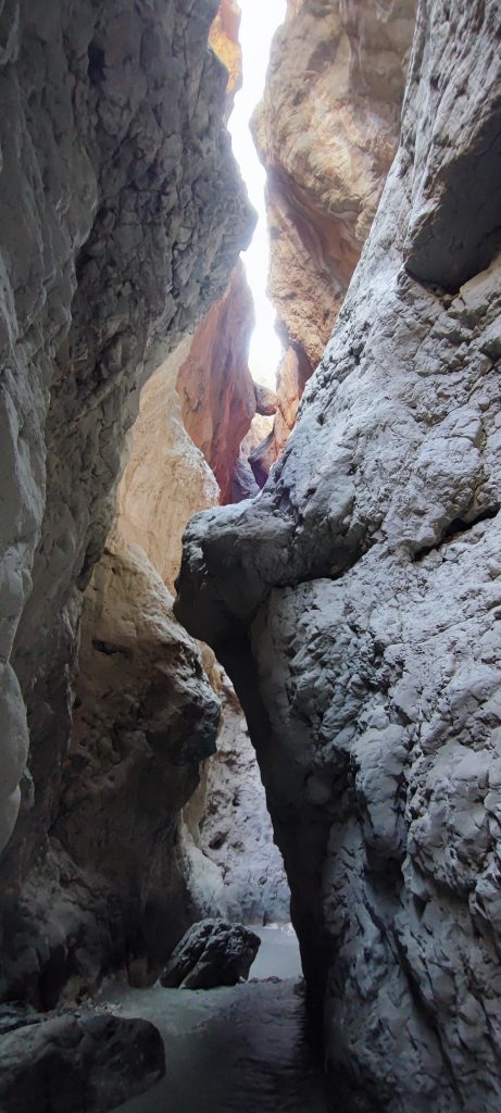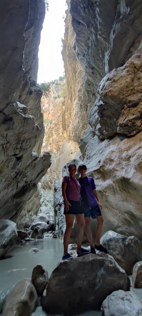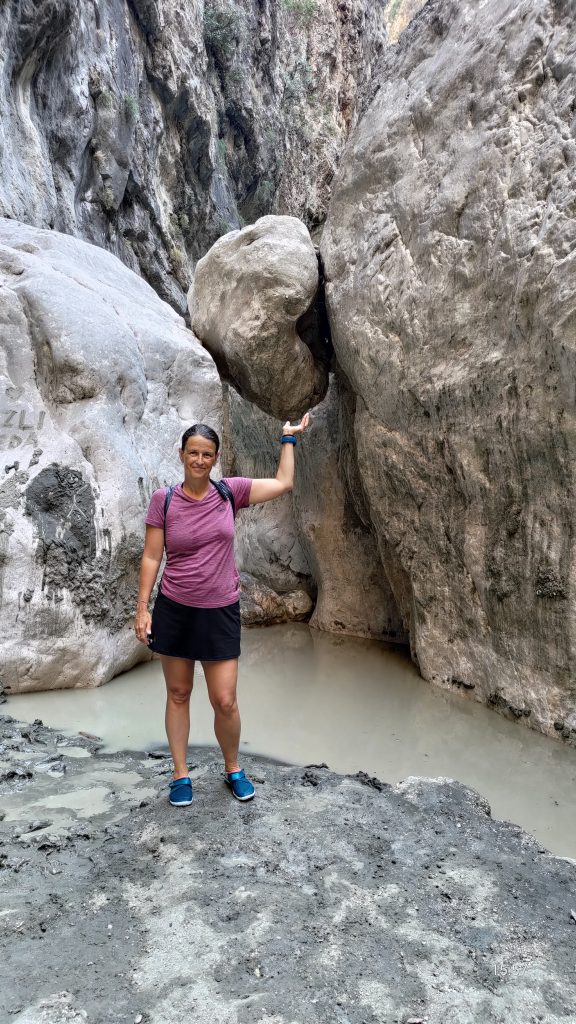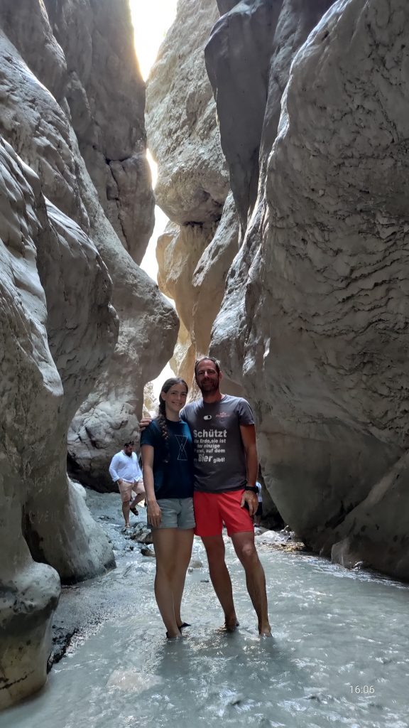 Wir waren schnell drin und sind in die Schlucht reingelaufen. Es war trotz den vielen Menschen sehr schön. Hohe, kurvige Felswände links und rechts, die bis zum Himmel ragten. Der Boden war teilweise schlammig, teilweise mit Kieselsteinen bedeckt.