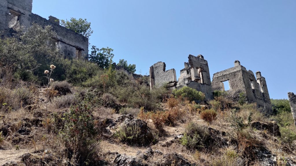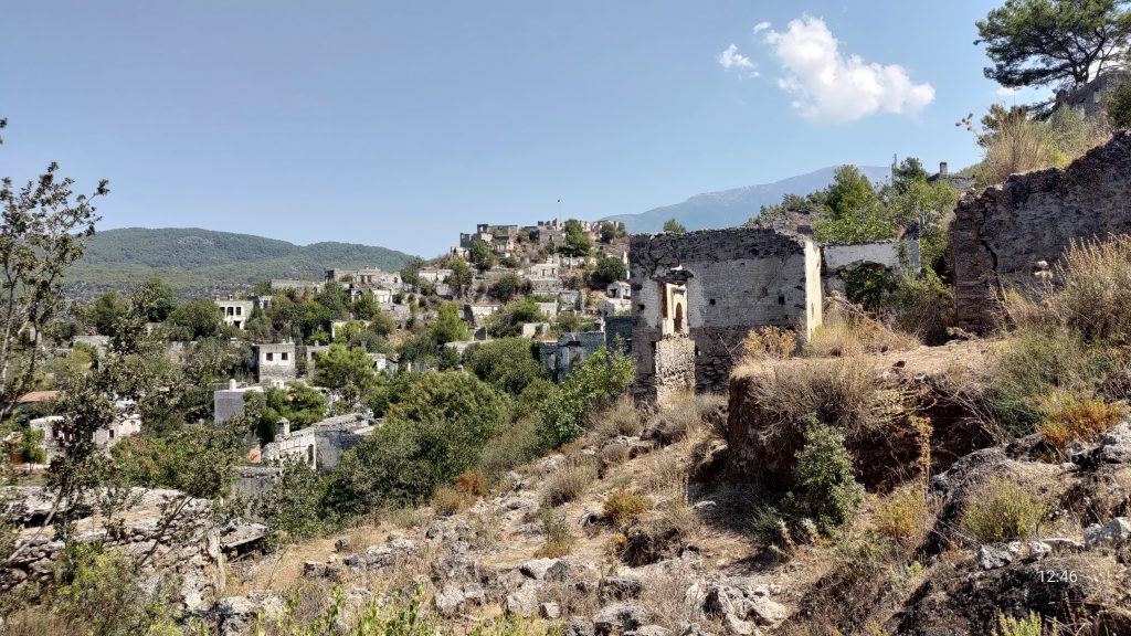 Das leere Dorf hat eine ganz besondere Atmosphäre. Wir sind zwischen den leeren, fenster-, tür- und dachlosen Häusern herumgelaufen und darüber haben nachgedacht, wie damals vor 100 Jahren gewesen sein konnte. Die Leute, die hier lebten, mussten einfach ihr ganzes Hab und Gut packen und in eine neue Heimat umziehen, die sie nie gesehen hatten. Offensichtlich passierten davor schon viele Gräueltaten. Im besten Fall wurden sie wenigstens von Freunden und Familie begleitet und konnten in Griechenland ein neues Leben anfangen. Mehr dazu kann man hier lesen: https://www.spiegel.de/geschichte/geisterstadt-kayakoey-zwangsumsiedlung-tuerkischer-christen-a-1090372.html