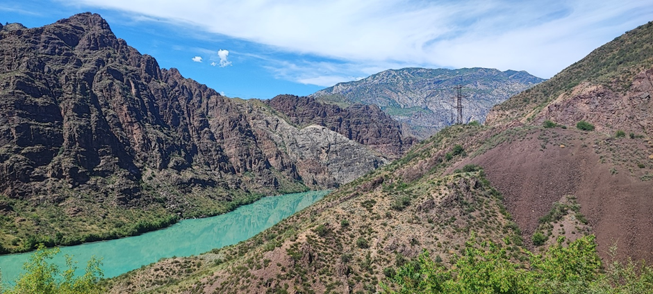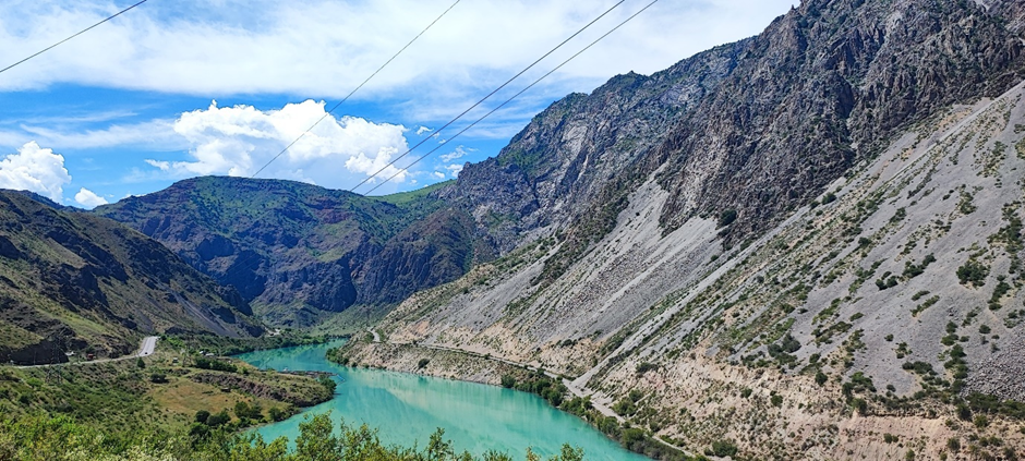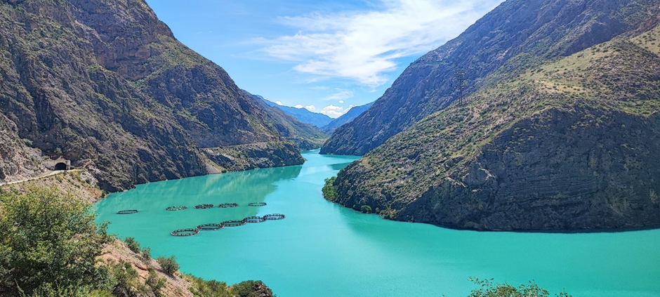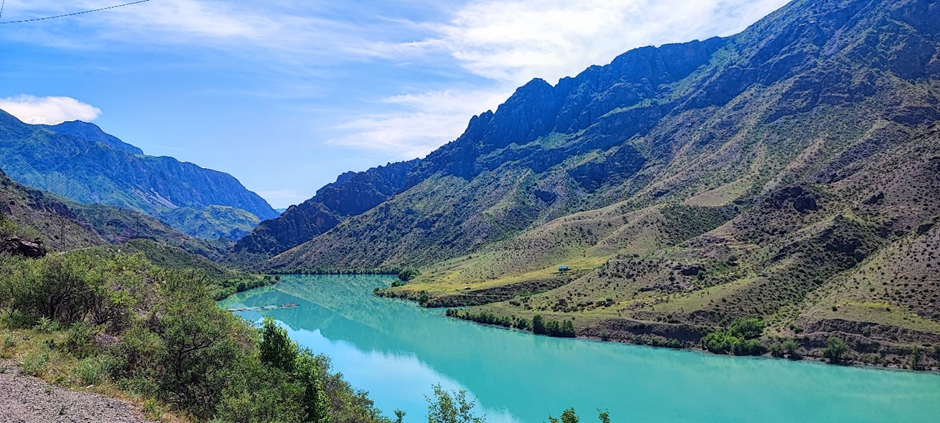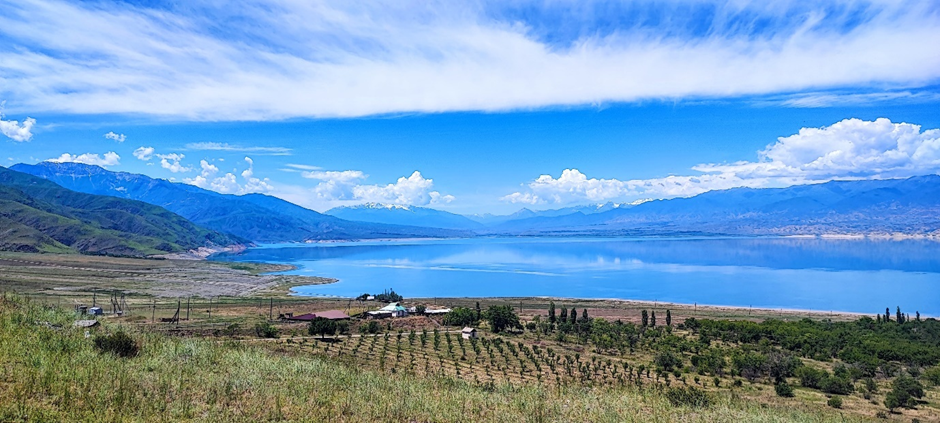 Frühs haben uns von Nathan und Natacha verabschiedet und sind (diesmal auf dem einfachen Weg) zur Hauptstraße gefahren. Marc hat unseren verbogenen Highjack bei einer Autowerkstatt gelassen, für kleinere Fahrzeuge kann man es wahrscheinlich noch verwenden. Danach fuhren wir in Richtung Osh. Erstmal mussten wir den Toktogul Lake fast umrunden.