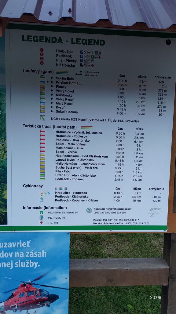 Nach der nochmaligen Stärkung haben wir den Abstieg Richtung des Flusses Hornad durch die Klastorska Roklina genommen. Dieser Weg war auch sehr steil und ging über Stock und Stein. Unten angekommen, führte unser Weg zwischen steilen und hohen Felswänden durch den malerischen Einschnitt des Hornad durch die Karstlandschaft. Wir mussten teilweise direkt an den Felswänden auf den in der Felswand eingelassenen Metallgittern laufen, es war ziemlich abenteuerlich.