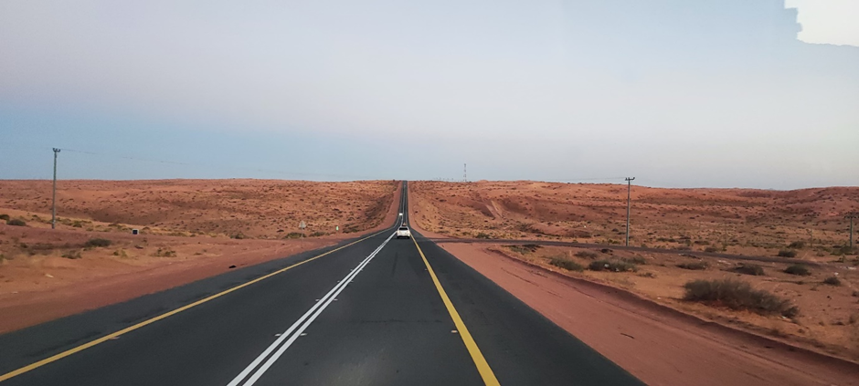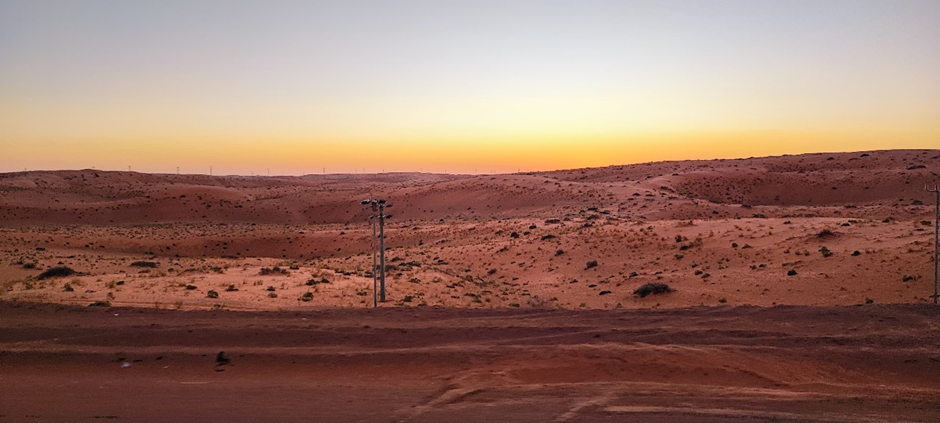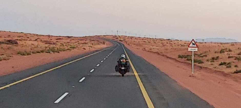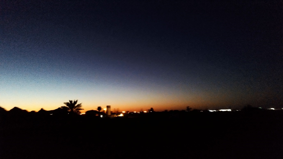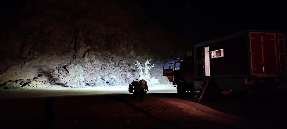 Es war schon nach 4 Uhr nachmittags, als wir losgefahren sind. Wir wussten, dass wir immer noch viel zu fahren haben und einen Teil davon im Dunkeln zurücklegen mussten. Die Landschaft war im Licht der Spätnachmittagssonne wieder mal grandios. Wüste, Sanddünen, Felsen und natürlich Dromedare. Die Dromedare waren auch der Grund, warum Steffi hinter uns fuhr, als es dunkel wurde. Es war schon komplett duster, als wir bei unserem Schlafplatz neben einer kleinen Ortschaft zwischen großen Felsen angekommen sind. Die Sterne waren auch sehr gut sichtbar und man konnte die Milchstraße richtig gut erkennen. Es war unseren letzter Abend zusammen mit Steffi. Wir mussten aber früher ins Bett gehen als gestern, da Steffi am nächsten Tag 600 km zu fahren hatte.